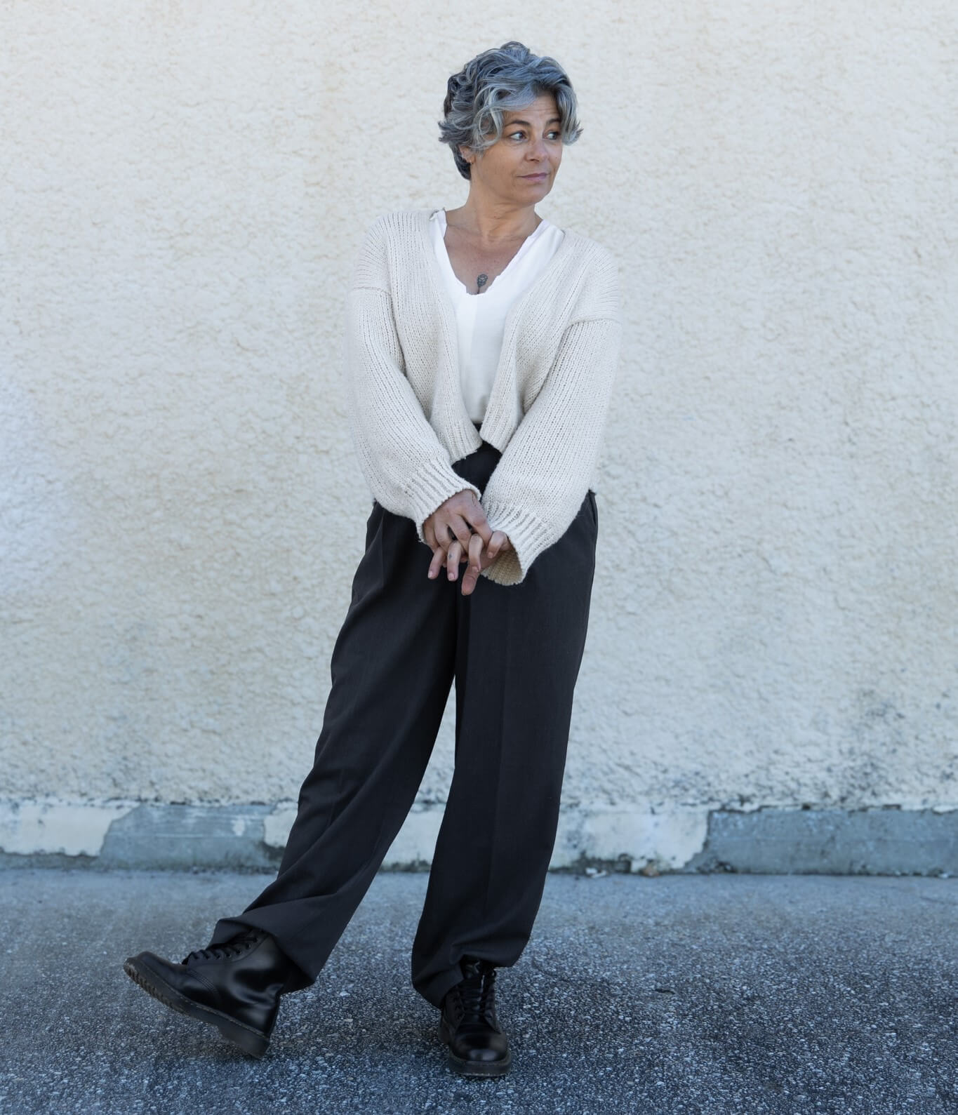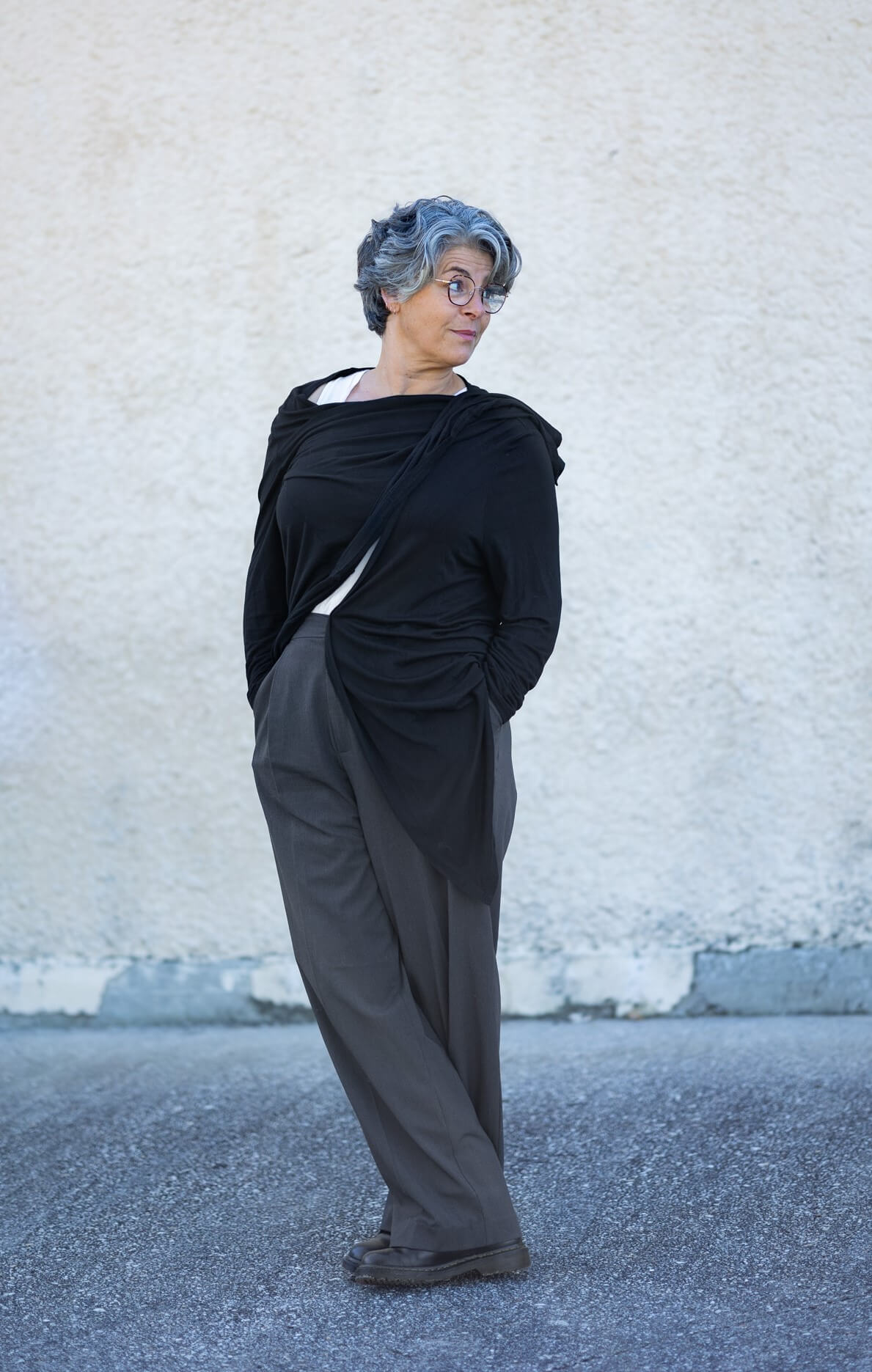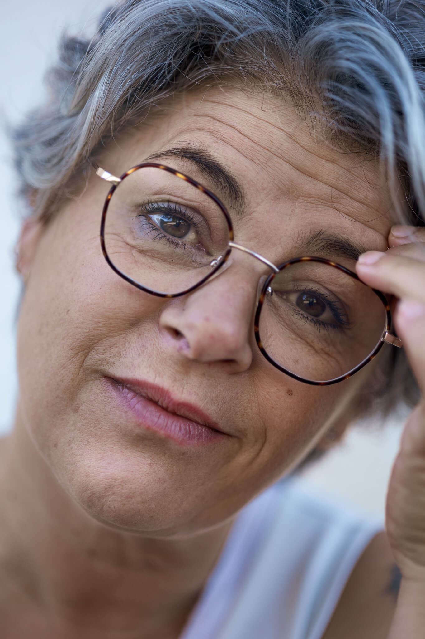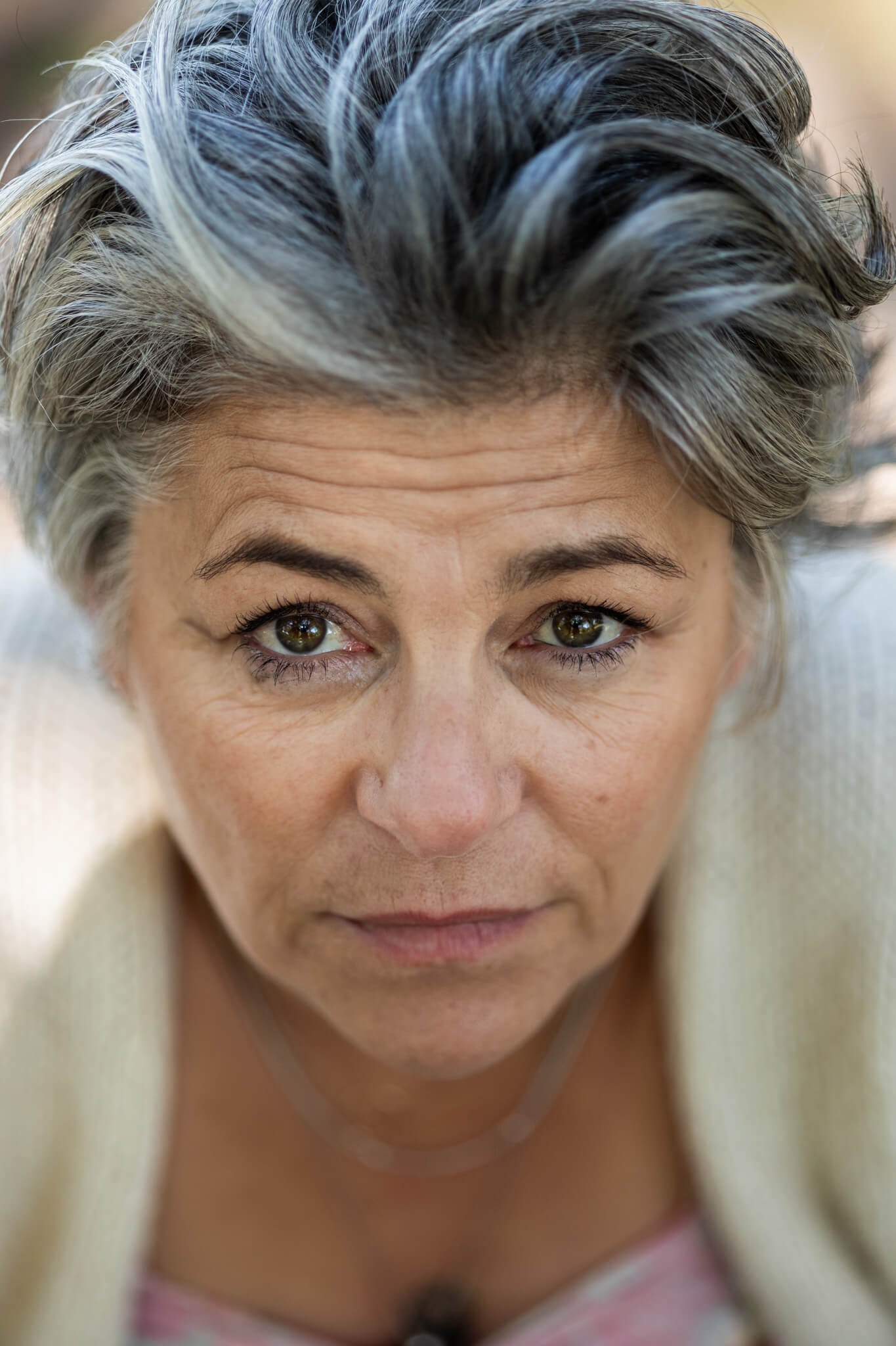 Hair: Grey, Eyes: Brown